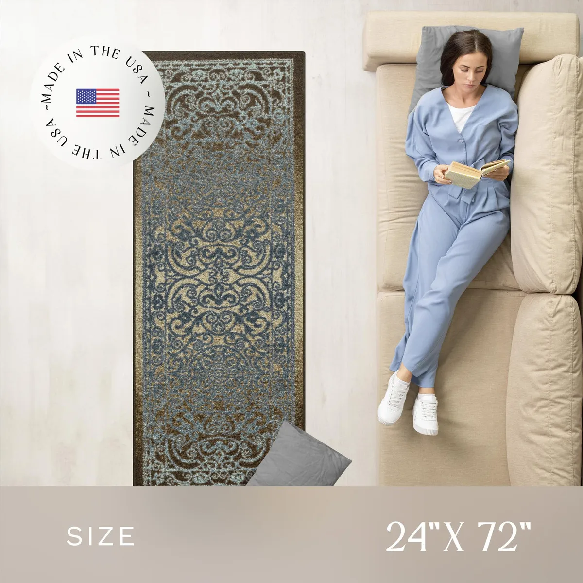 Transforma tus pasillos con la elegancia y seguridad que solo la alfombra [Tu Marca] puede ofrecer. Disfruta de un diseño clásico Nogal Azul, que combina a la perfección con cualquier decoración, mientras que su base antideslizante te brinda tranquilidad y estabilidad en cada paso.
