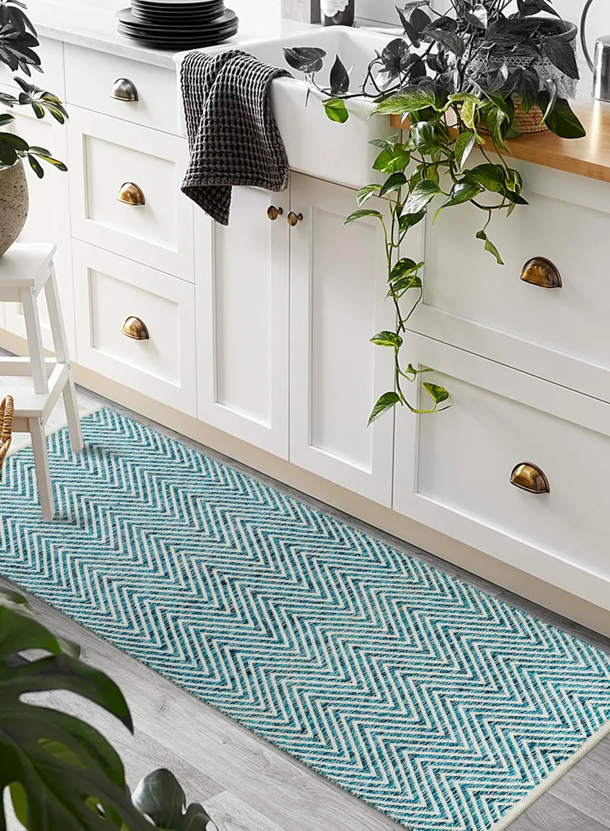 Alfombra Tejida a Mano Verde-Azulado ‘Verano Sereno’ – Marca ‘CasaConfort’: Ideal para Pasillo o Cocina, Diseño Artesanal, Durabilidad Superior, Fácil