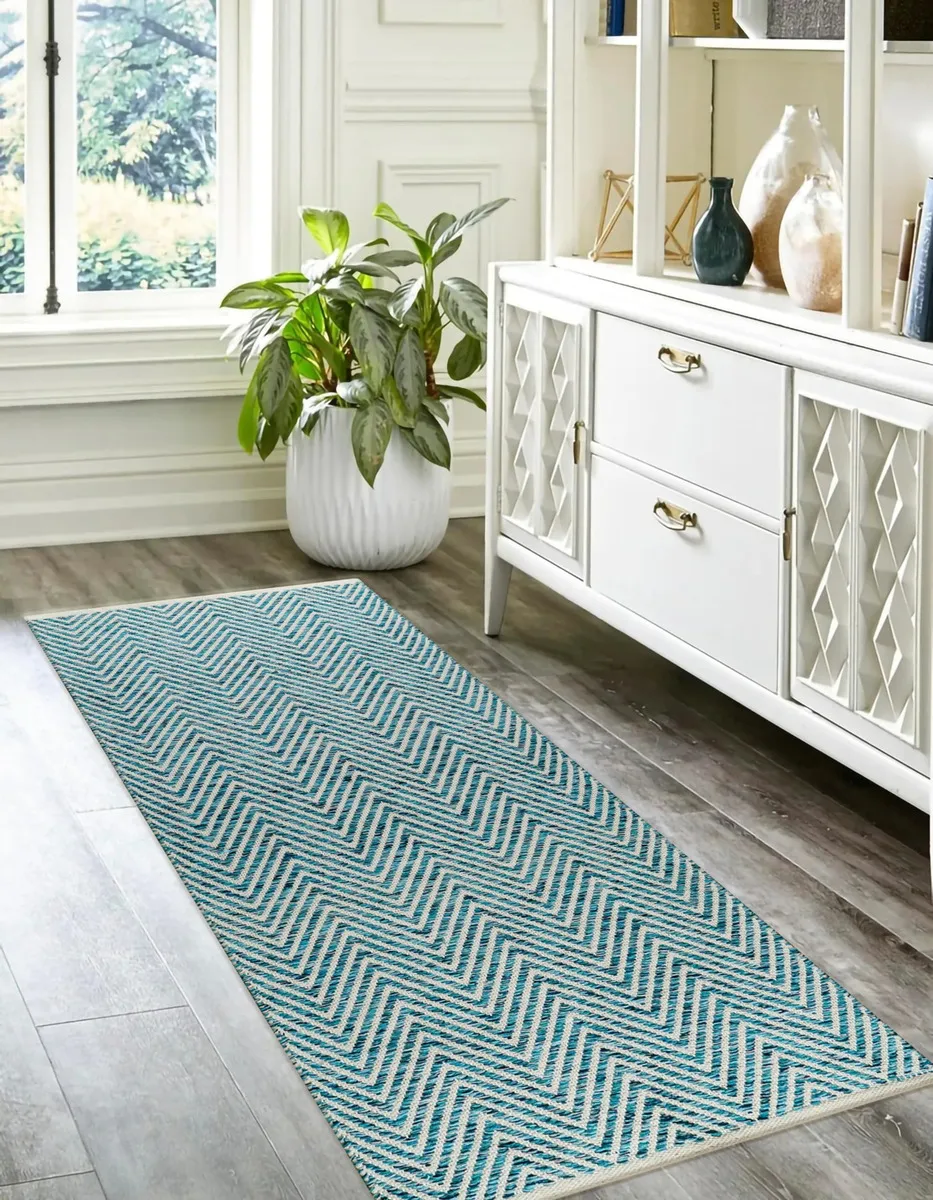 Transforma tus espacios con la calidez y el estilo de la alfombra ‘Verano Sereno’ de CasaConfort. Esta pieza tejida a mano, con su vibrante combinación de verde y azulado, aportará un toque de frescura y elegancia a tu pasillo o cocina, creando un ambiente acogedor y lleno de vida.