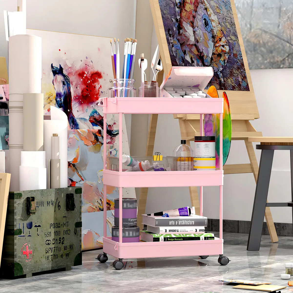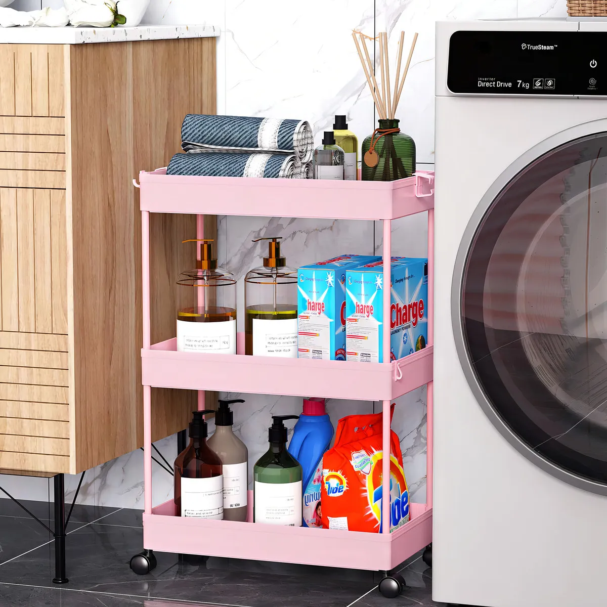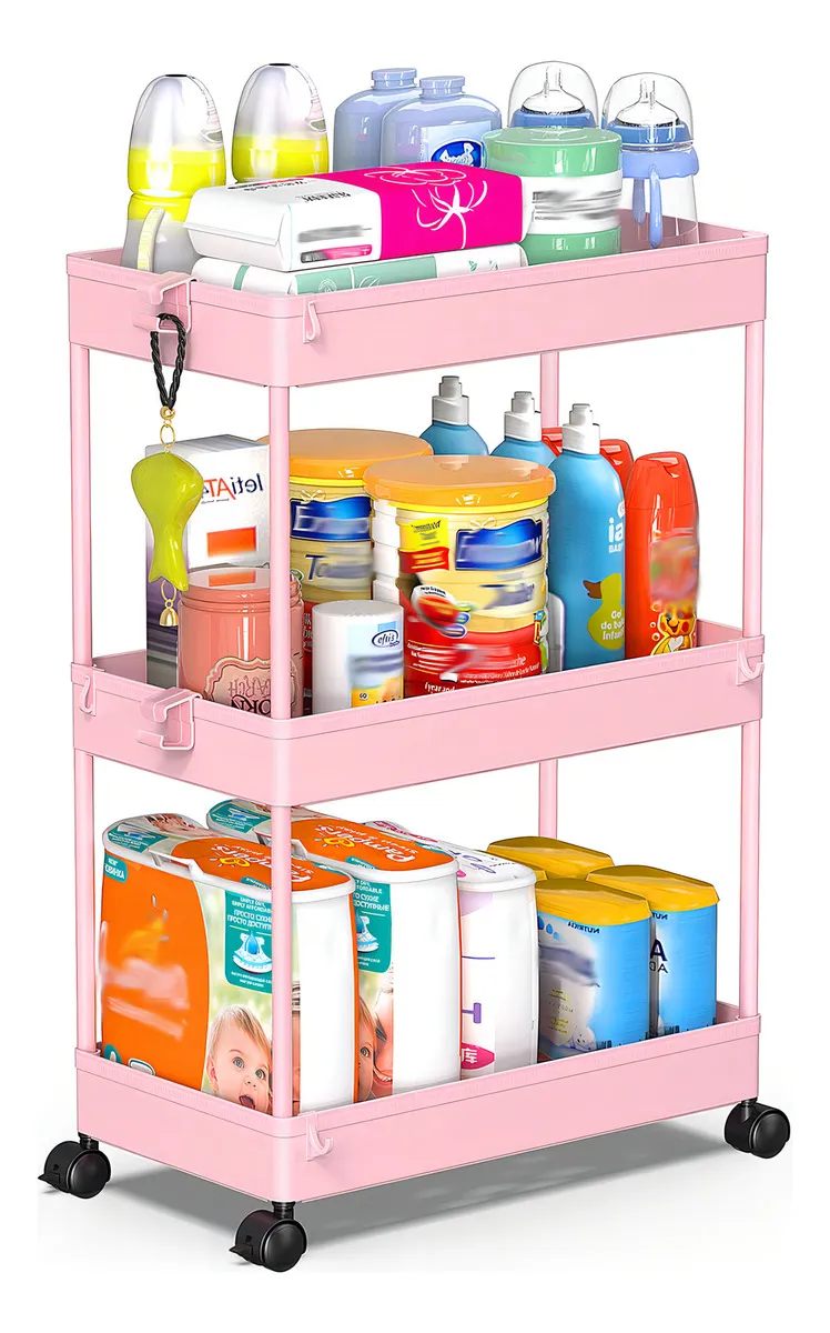 Carrito de Almacenamiento Rodante 3 Niveles Rosado Marca [MarcaInventada] – Modelo [ModeloInventado]: Organización Multifuncional para Cocina, Baño y