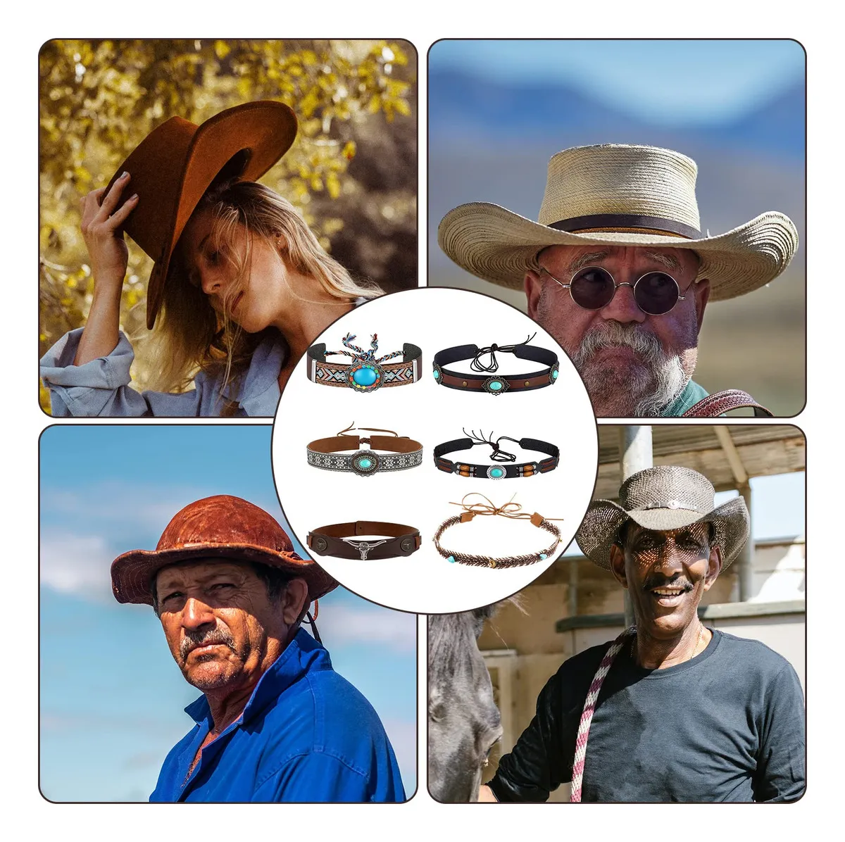 Pack de 6 cintas para sombrero de vaquero fabricadas en cuero suave de alta calidad. Ideales para reemplazar, personalizar o reparar tus sombreros. Ajuste cómodo y duradero. Fácil instalación.