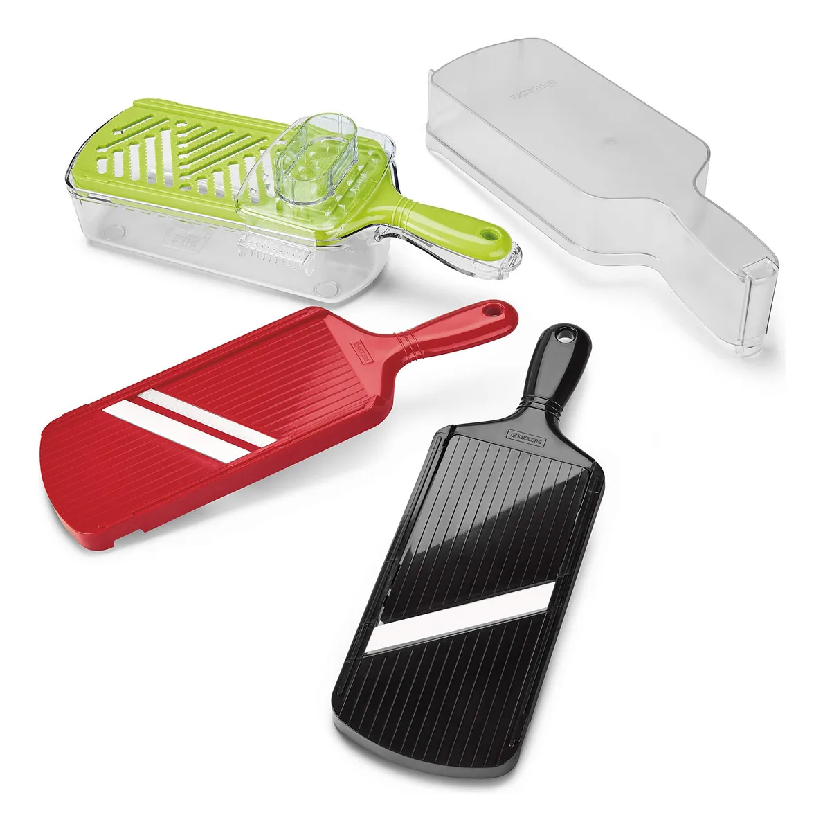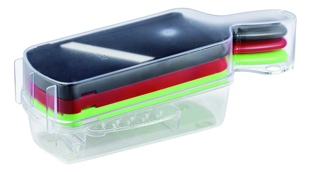 Incluye: cortador ajustable negro, cortador de juliana rojo y rallador grueso verde