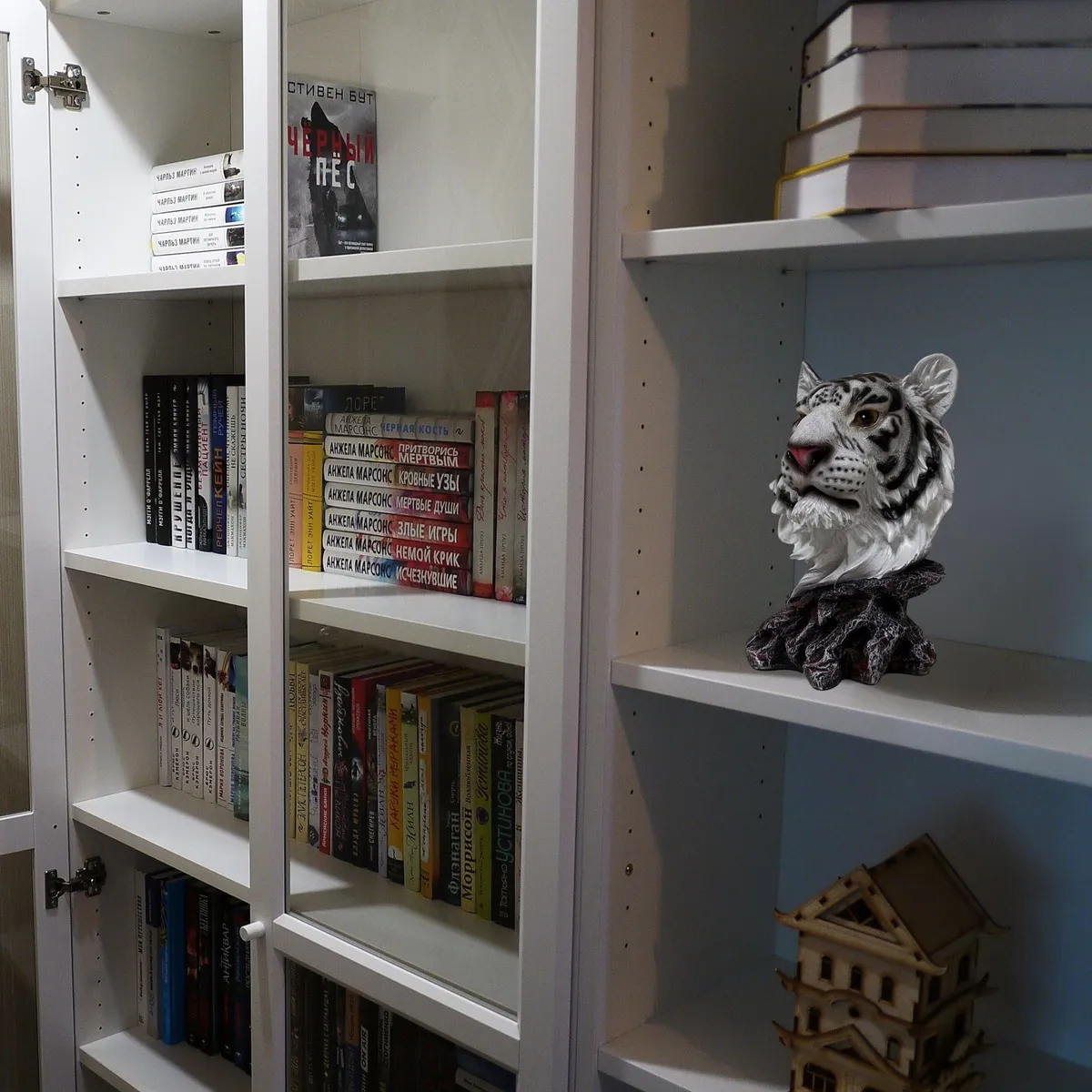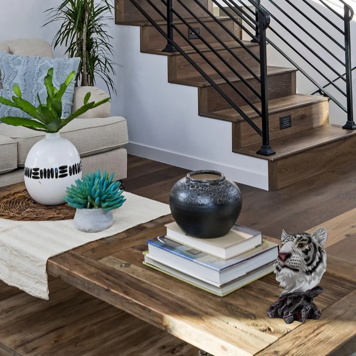 Escultura Decorativa Busto de Tigre Blanco Majestic: Resina Premium, Detalles Realistas, Ideal para Escritorio o Estantería, Adorno para Hogar Moderno