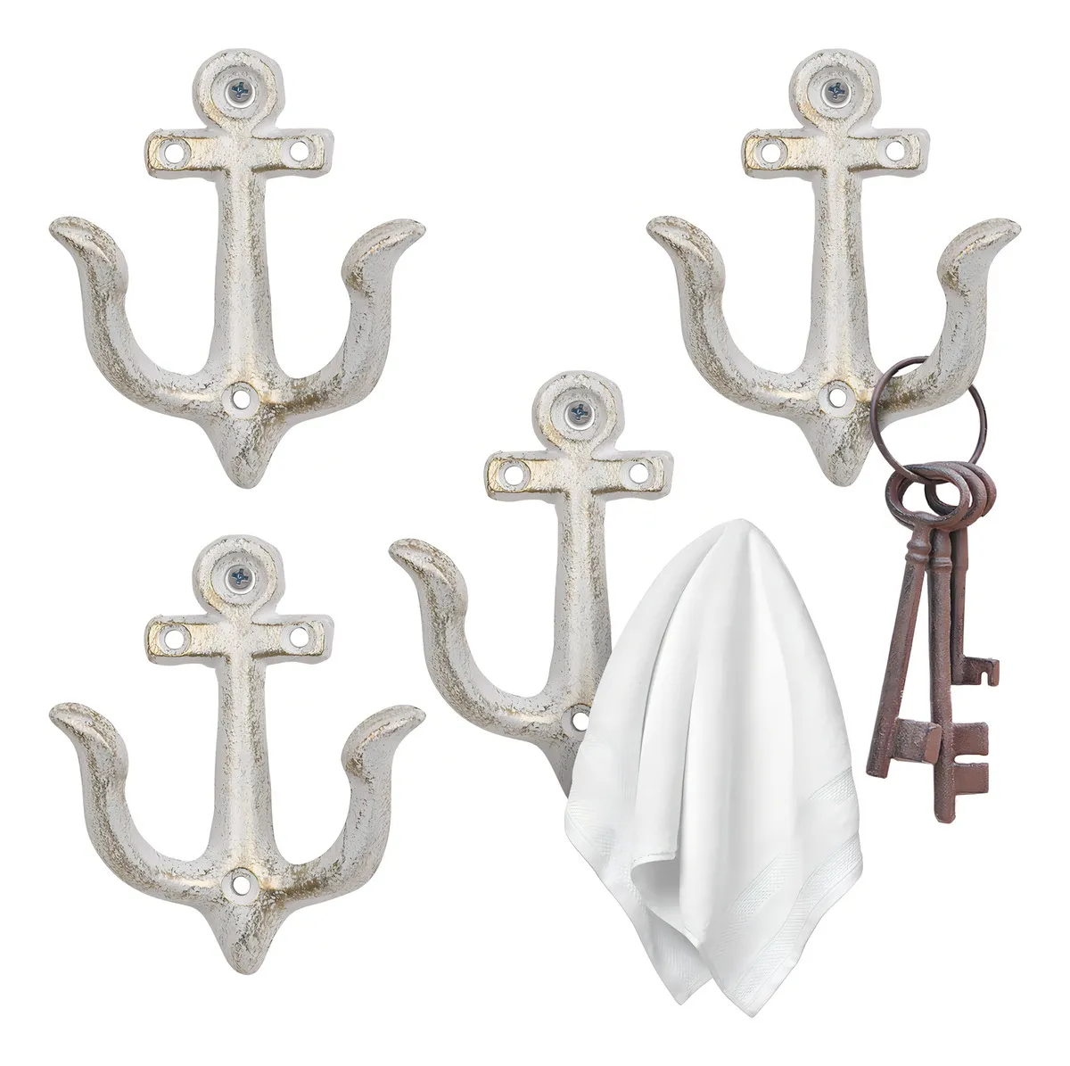 Añade un toque náutico a tu hogar con los ganchos RustiDecor en diseño de ancla. Este set de 3 ganchos de hierro fundido es perfecto para colgar toallas, abrigos, llaves o cualquier objeto que necesites tener a mano. Su instalación es sencilla y su diseño rústico complementa cualquier decoración.