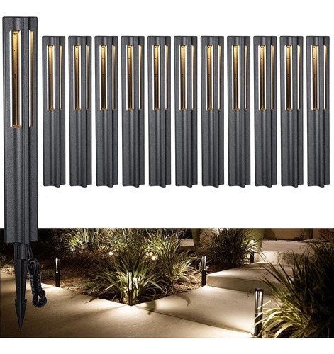 Ilumina tu Jardín con Elegancia: Paquete de 12 Luces LED de Trayectoria Solar Marca SolarGlow, Modelo GL-400, Resistentes al Agua, Fácil Instalación y