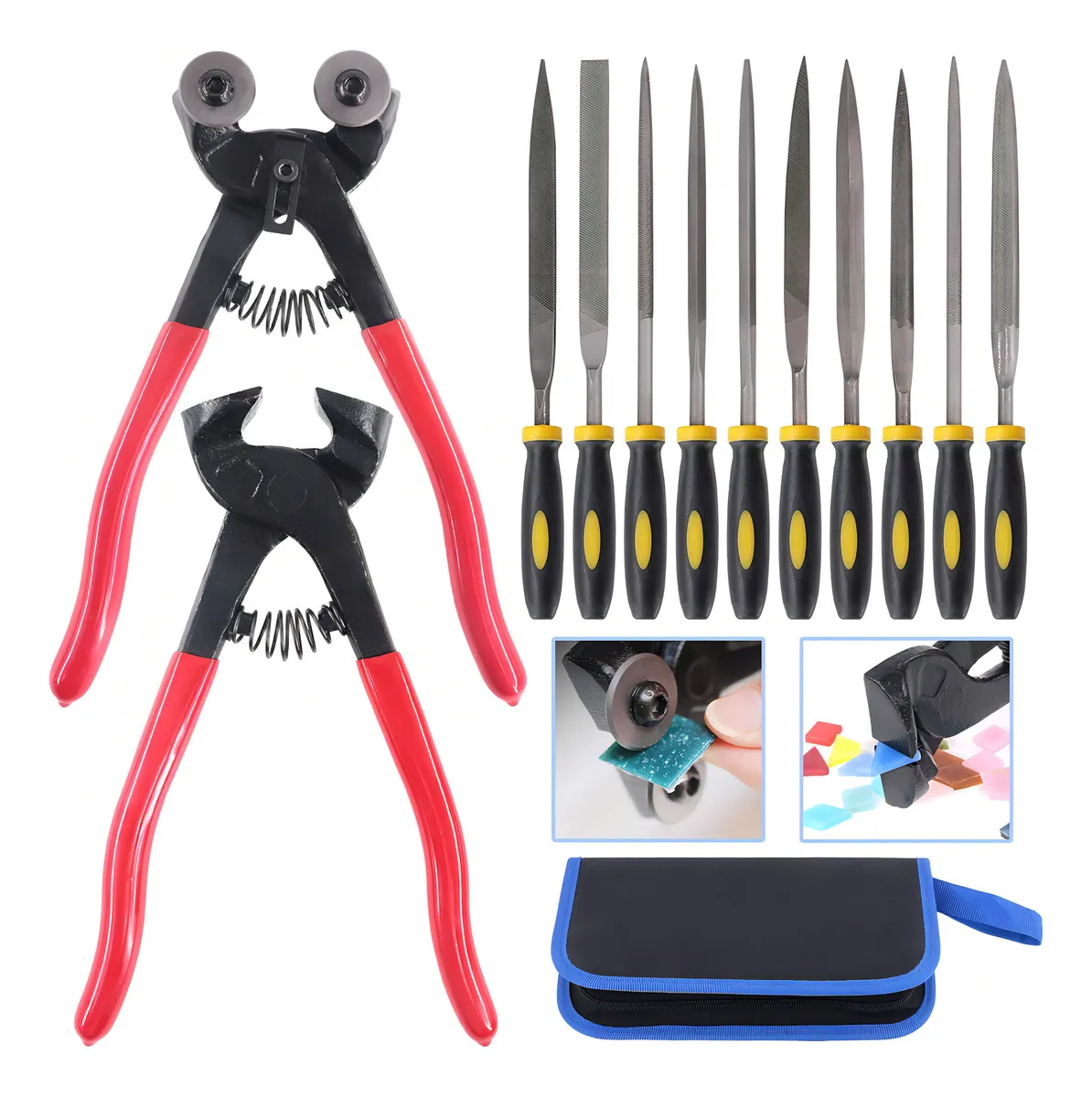 Kit Profesional de Herramientas para Mosaico CREATE & CRAFT®: 12 Piezas Esenciales para Vidrio, Cerámica y Manualidades. Cortadores Precisos, Alicates