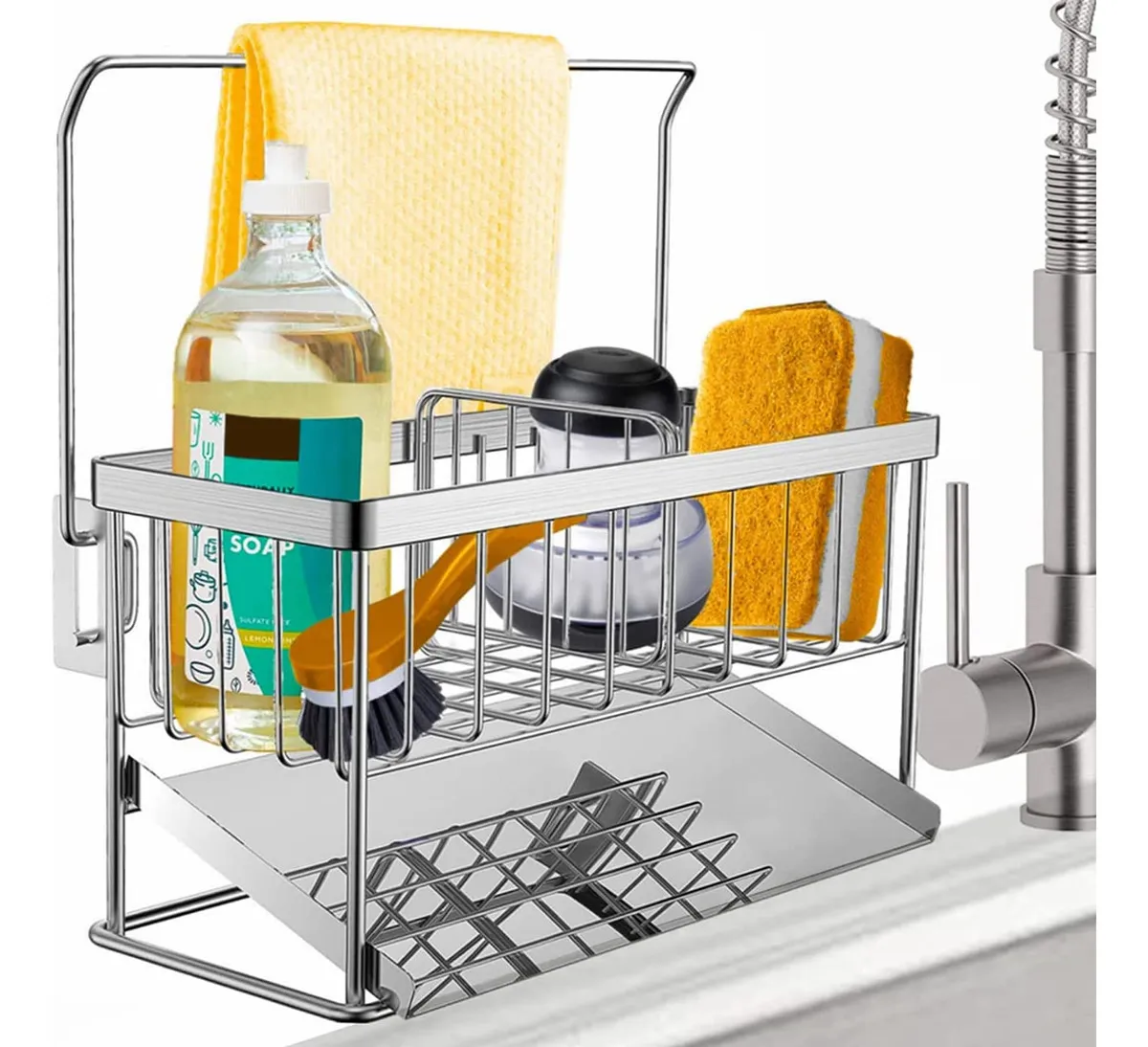 ¡Transforma tu cocina con el organizador de fregadero ideal! Olvídate del desorden y maximiza el espacio con nuestro escurridor de acero inoxidable 304. Disfruta de una cocina organizada, funcional y siempre lista para crear.