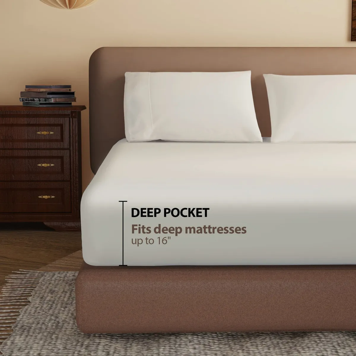 Sábana Bajera Ajustable de Algodón Egipcio 800 Hilos, Tamaño Queen en Beige – Marca Supreme Comfort: Suavidad Excepcional, Frescura y Durabilidad Supe