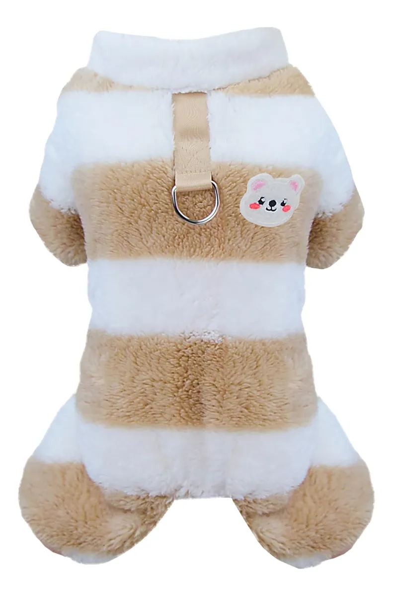 Nuevo y elegante: este pijama para perro tiene un diseño hermoso y simple. Está diseñado con un overol de 4 piernas con estampado de rayas arco iris. Al usarlo, tu mascota será un ángel encantador.