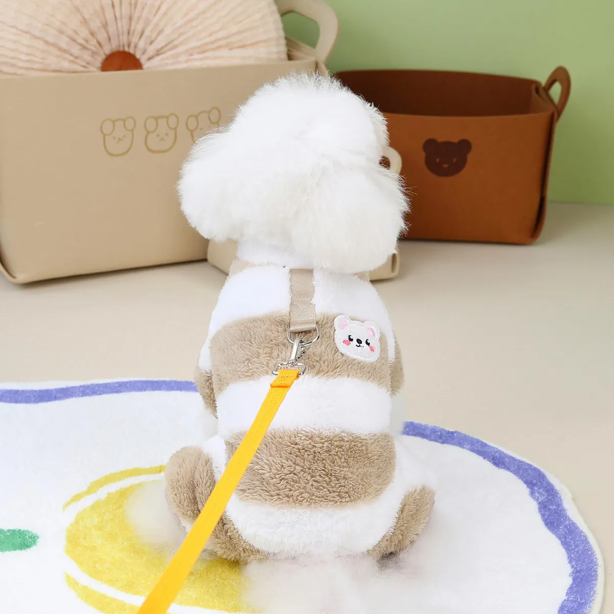 Cálido y suave: este suéter para perro está hecho de tela de forro polar coral. Es muy suave y cómodo. Hay mezcla de forro polar suave. Las mangas y la cintura acanaladas garantizan un ajuste cómodo. Mantén a tu cachorro más cálido y elegante durante el frío otoño e invierno. Este suéter para perro tiene un lazo resistente para correa en la parte posterior del cuello. Puedes fijar una