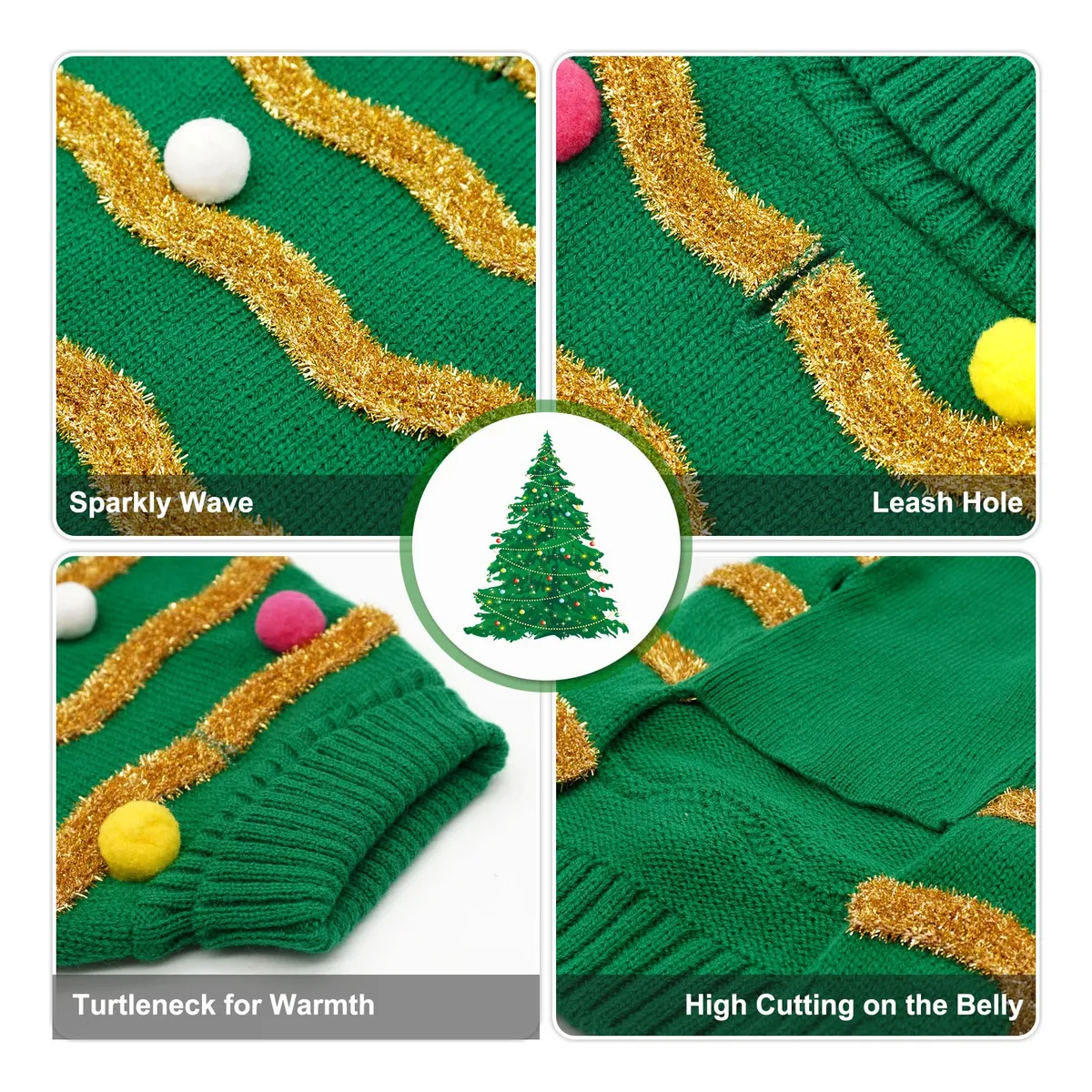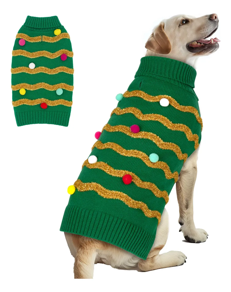 Suéter de Navidad para perro con agujero para la correa, con purpurina, cuello alto, ropa de invierno para clima frío, suéteres cómodos para perros grandes