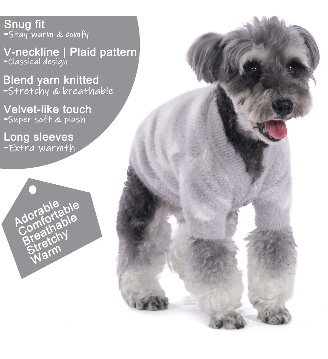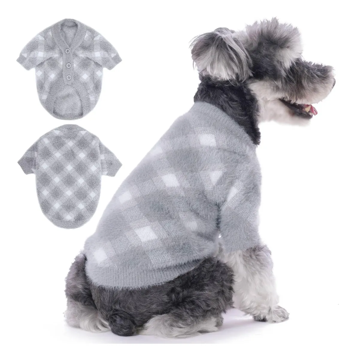 Suéter de punto para perros y gatos pequeños. Ropa de invierno plateado gris. ¡Mantén a tu mascota abrigada y con estilo!
