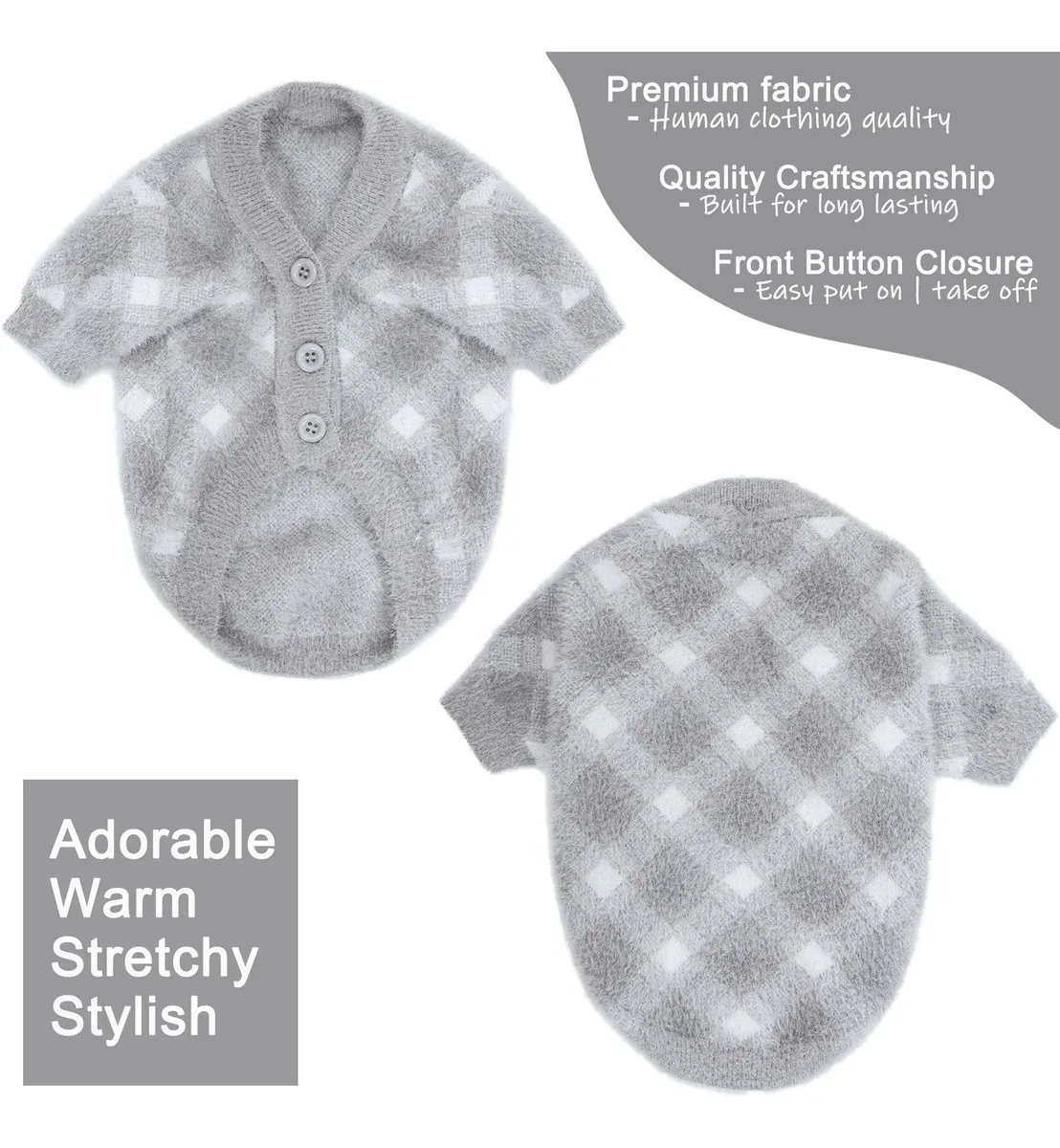 Cierre a presión para poner y quitar fácilmente: no es fácil de poner o quitar su ropa, especialmente cuando tu bebé peludo es un mover. Nuestro suéter para perro es de estilo cárdigan y ya no tendrás ese problema.