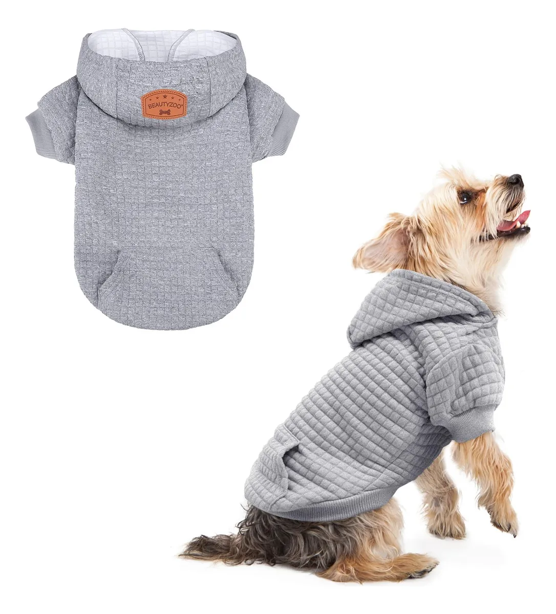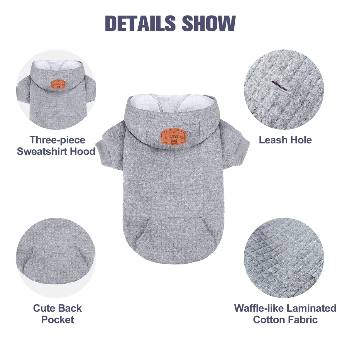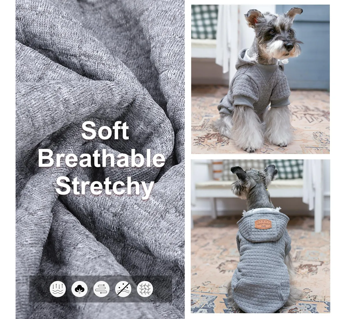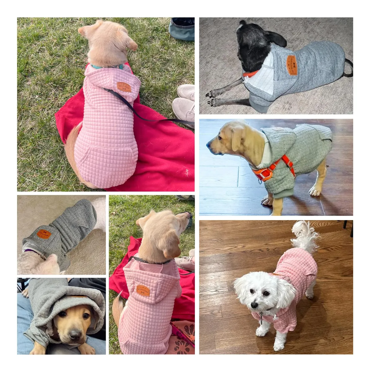 Suéter con Capucha para Perros pequeños con Bolsillos, Ropa para Perros pequeños, medianos, niños y niñas, Abrigos para Mascotas de algodón Laminado Tipo gofre con Sombrero y Orificio para