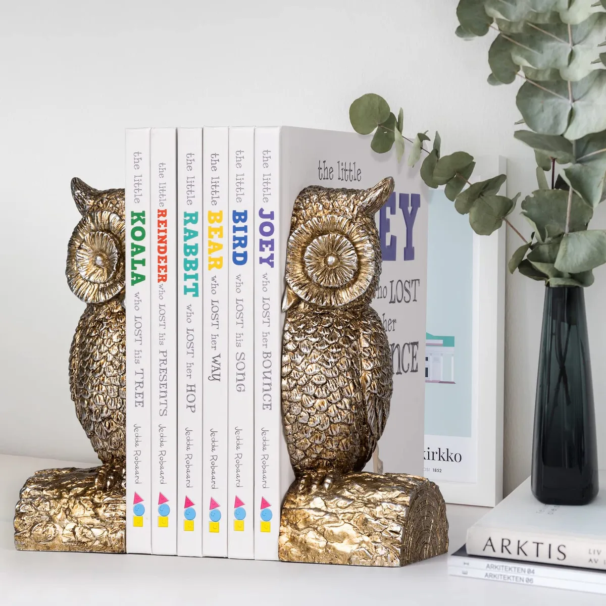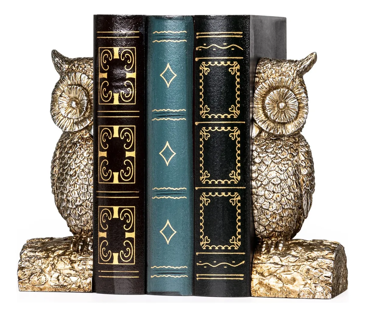 Sujetalibros Decorativos de Búho en Resina, Marca ‘Arte & Hogar’: Diseño Antideslizante para Escritorio, Estantería, Biblioteca – Elegancia y Organiza