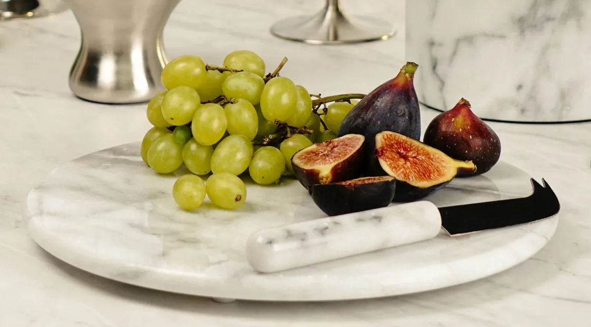 Eleva tus reuniones y deleita a tus invitados con la elegancia atemporal de nuestra Tabla para Quesos y Cuchillo de Mármol Blanco. Disfruta de la perfecta combinación de funcionalidad y estilo, transformando cada presentación de quesos en una experiencia memorable.