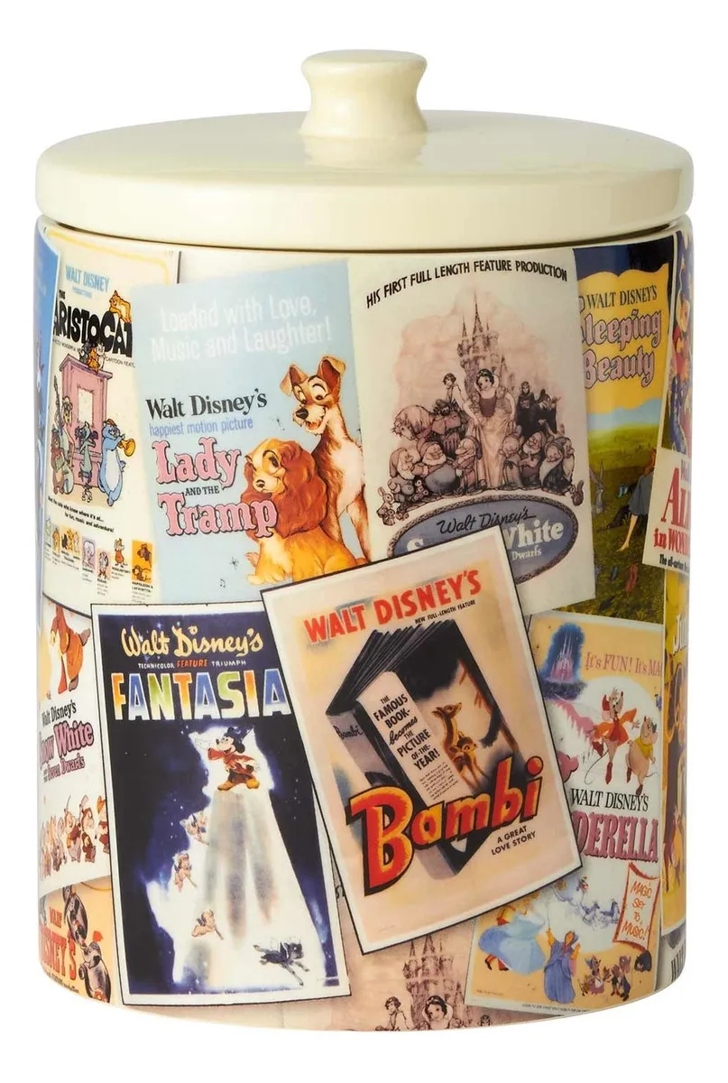 ¡Revive la magia de Disney en tu cocina! Este encantador tarro de galletas, con icónicos posters de películas Disney, es el complemento perfecto para endulzar tus momentos y decorar con un toque de nostalgia. Ideal para conservar galletas frescas o para exhibir, ¡lleva la fantasía a tu hogar!