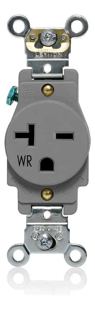 Toma de Receptáculo Resistente a la Intemperie Leviton Weather Resistant 20 Amperios 125V – Protección Superior Contra Clima Extremo para Exteriores,
