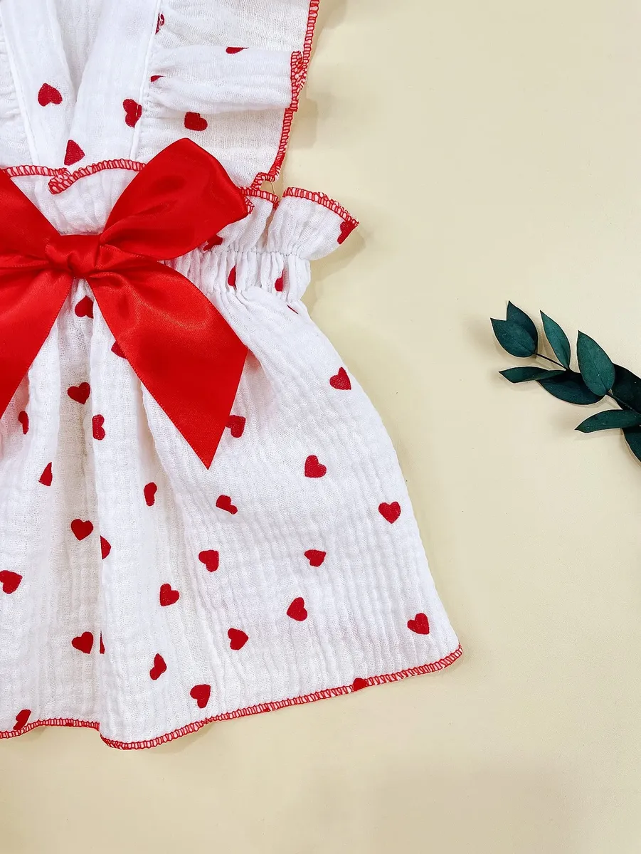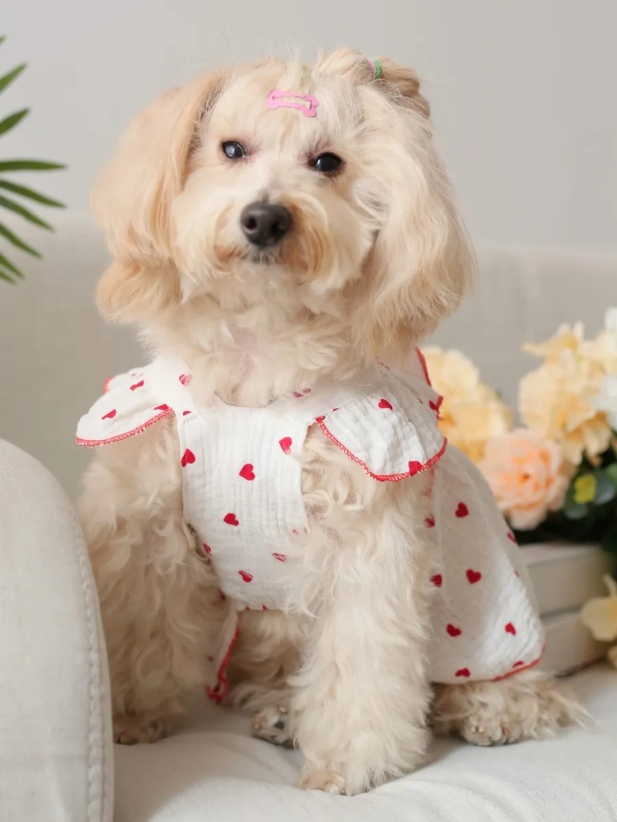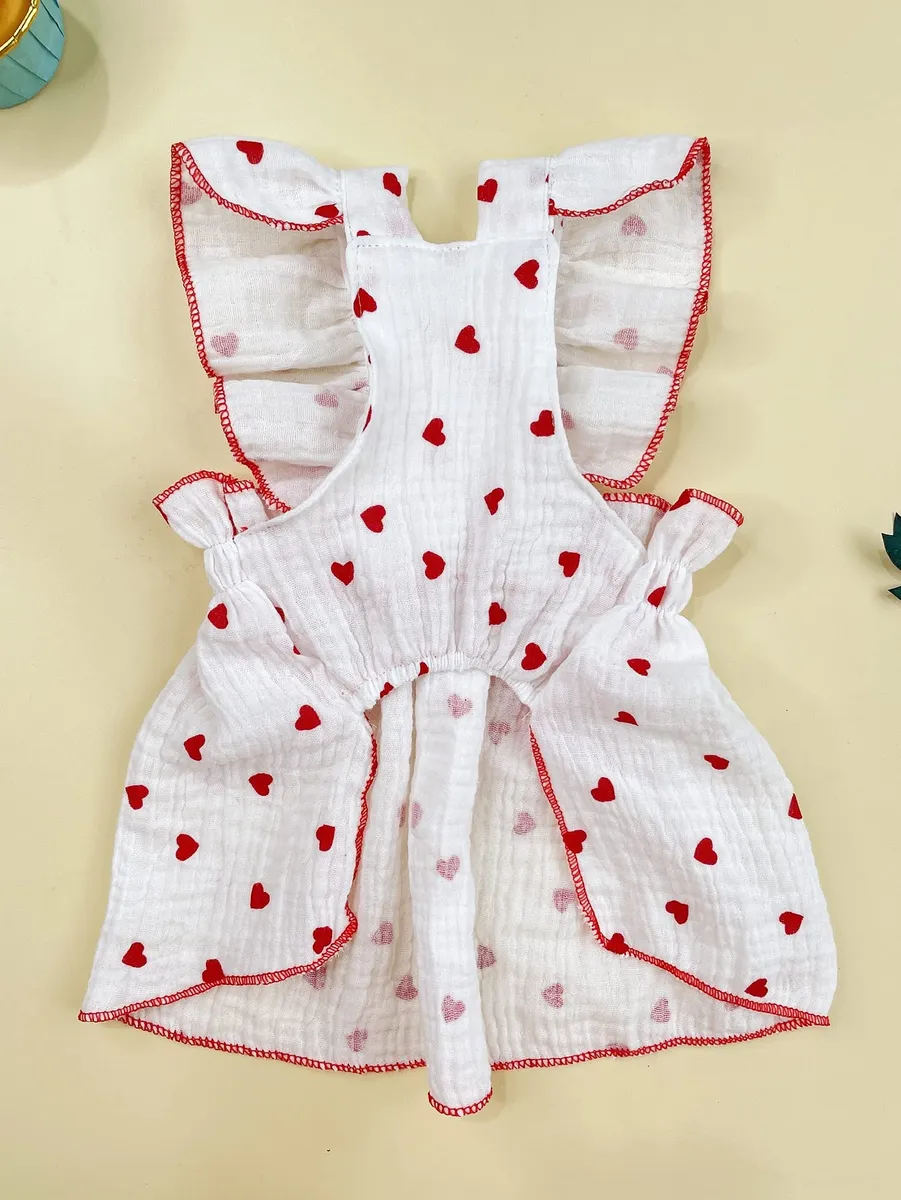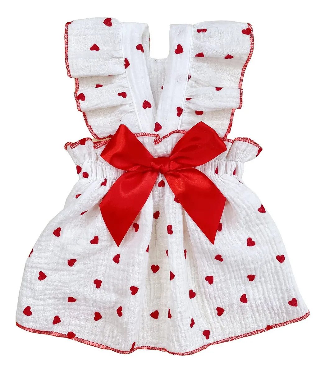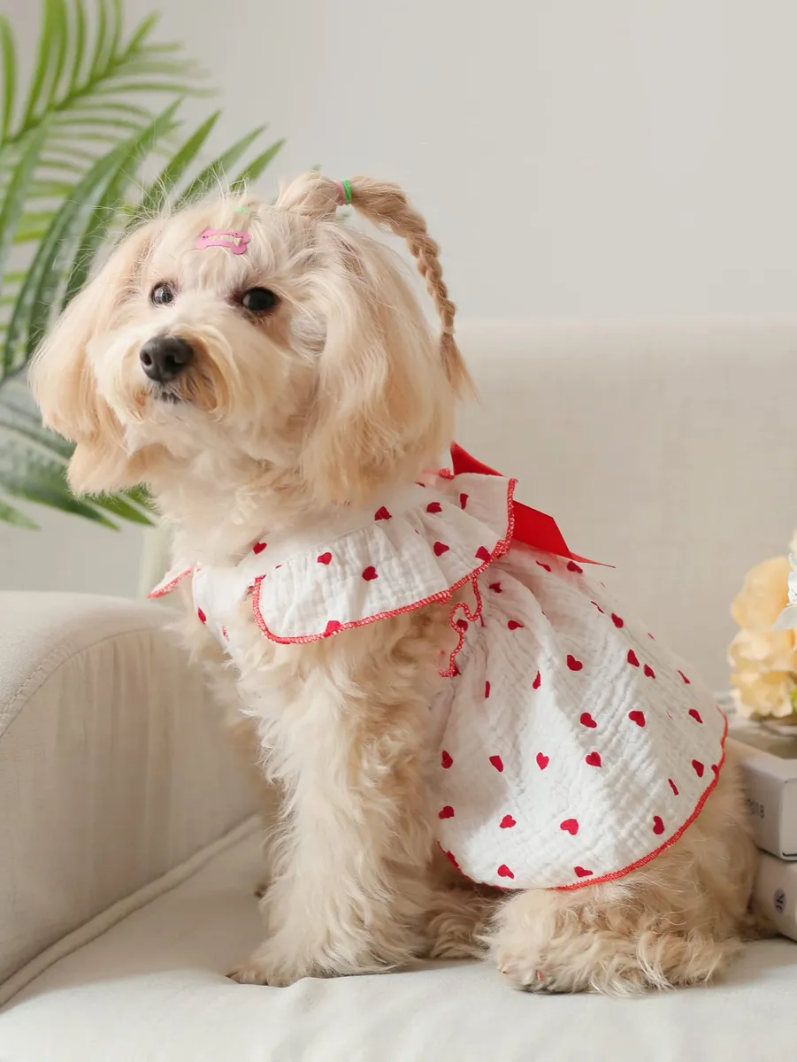 Descubre el vestido estampado de corazón para perros y gatos con lazo rojo y blanco. ¡Haz que tu mascota luzca elegante y cómoda!