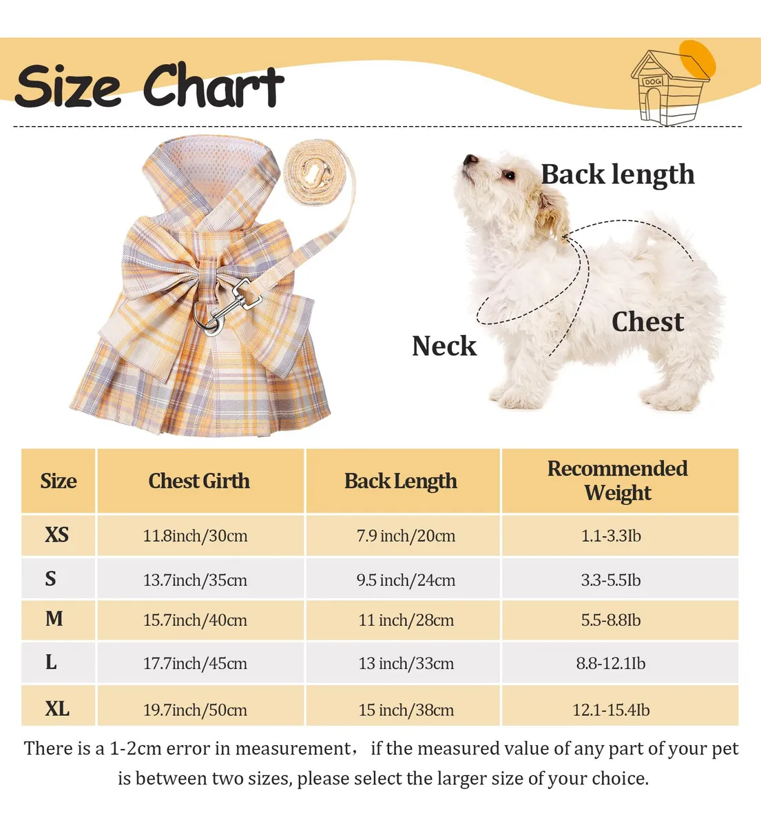 Diseñado para mascotas pequeñas y medianas: nuestro juego de vestidos para perros con correa es adecuado para la mayoría de mascotas pequeñas o medianas, como perros pequeños, gatos, conejos, chihuahuas, etc. Consulta la tabla de tallas antes de comprar, y mide el pecho, espalda y cuello de tu mascota para elegir una talla, deja 23 dedos de espacio al medir para una experiencia de uso cómoda si el tamaño medido está entre dos tallas, te recomendamos que elijas una talla más grande para tu amigos