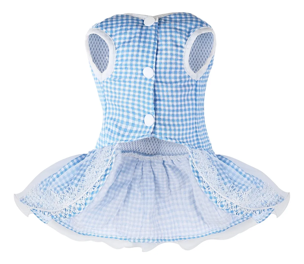 Descubre el Vestido Azul a Cuadros para Perro con Lazo y Correa de Arnés. Moda elegante y funcional para tu mascota. ¡Compra ahora!