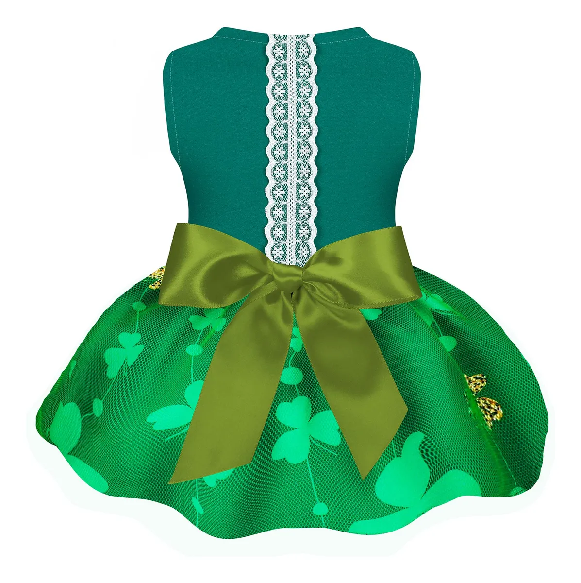 Vestido para perro de San Patricio en verde con lazo. ¡Ropa festiva y elegante para tu mascota en el Día de San Patricio!