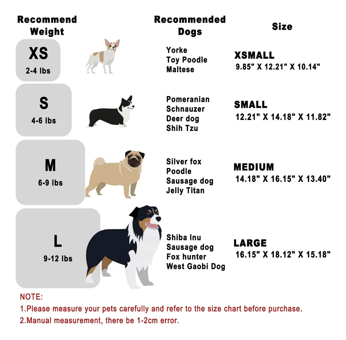 Tamaño: XS Contorno del pecho: 30,99 cm, contorno del cuello: 25,74 cm, longitud de espalda: 25 cm, peso recomendado: 24 libras. Consulta nuestra tabla de tallas y mide el tamaño de tu mascota antes de realizar el pedido.