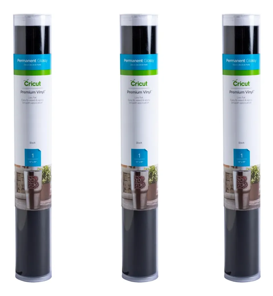 Vinilo Adhesivo Permanente Cricut Negro Premium – Paquete Triple: Durabilidad Superior, Acabado Mate Elegante y Fácil Aplicación para Proyectos DIY