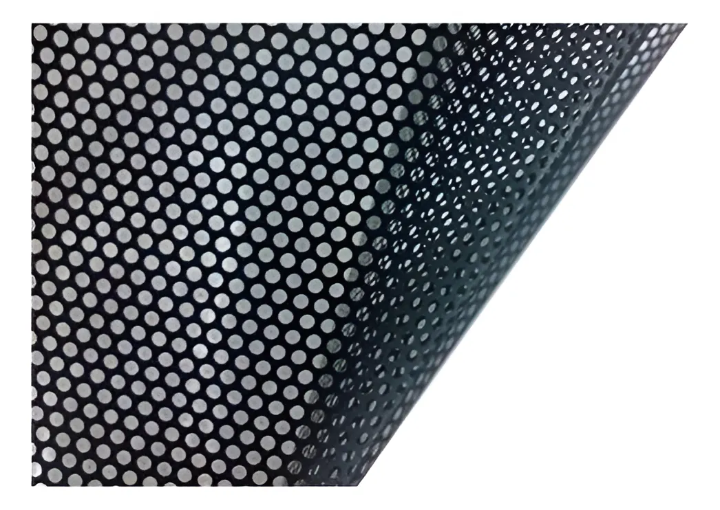Superficie de 50/50 microperforado permite visualización negra en ambos lados, pero solo ver fuera desde dentro.