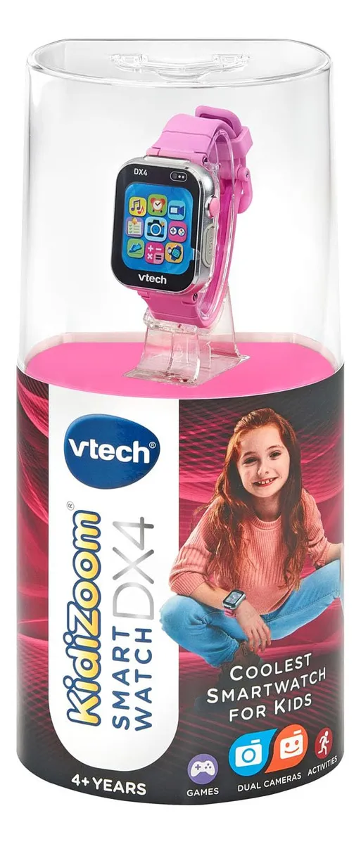 El VTech Kidizoom DX4 en color rosa es el reloj inteligente ideal para niños. Combina funciones de reloj, cámara de fotos y video, juegos, reproductor de música y más, todo en un diseño duradero y atractivo. ¡Perfecto para explorar, aprender y divertirse!
